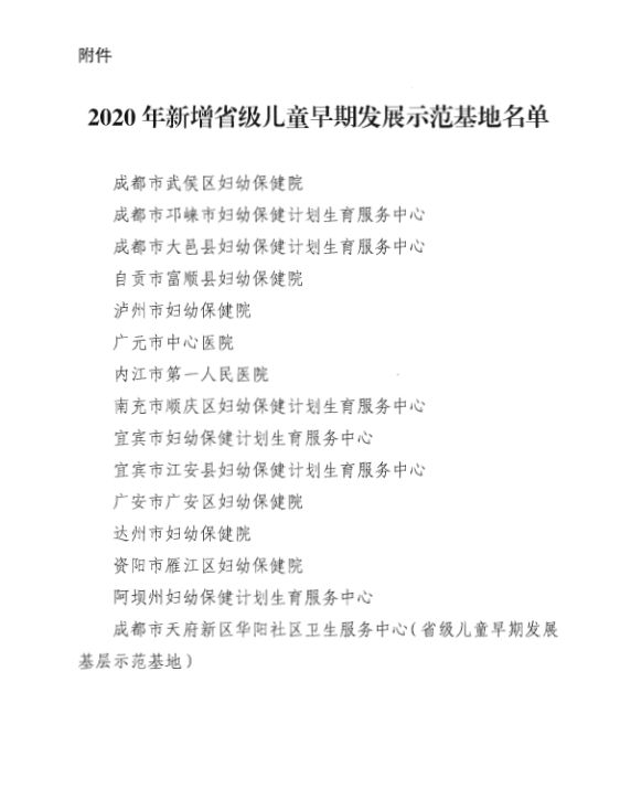 2021年2月20日,新年伊始,宜宾市妇幼保健院捷报传来!我院成功创建成为2020年四川省儿童早期发展示范基地!这也是宜宾市妇幼保健院送给宜宾市广大妇女儿童最好的一份新年礼物!