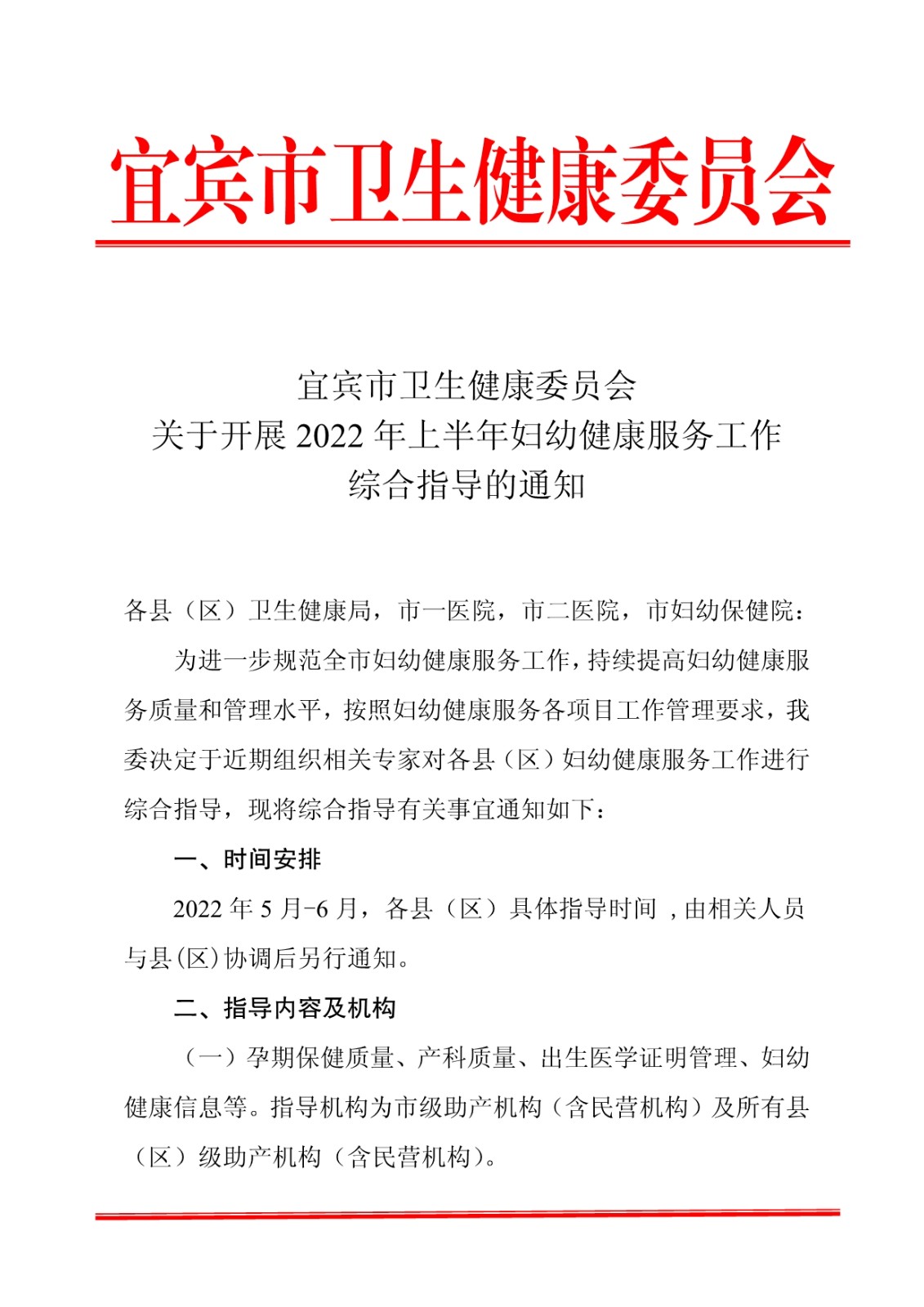 宜宾市卫生健康委员会关于开展2022年上半年妇幼健康服务工作综合指导的通知
